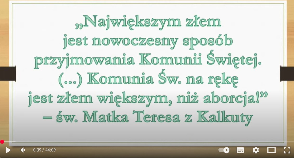 Aktualności : Z powodu zagrożenia Kościoła Św. do najwyższego stopnia dajemy ten przekaz z naszej strony internetowej  :  Przez Komunię Św. na rękę nie podniosą się Narody !